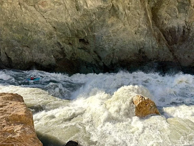 S: The goats are no problem, and I can tell that you are scrappy by how hard you are paddling. Ease up boy! You have 80 kilometers of canyon to go, and many holes to punch. Think you can keep that up?